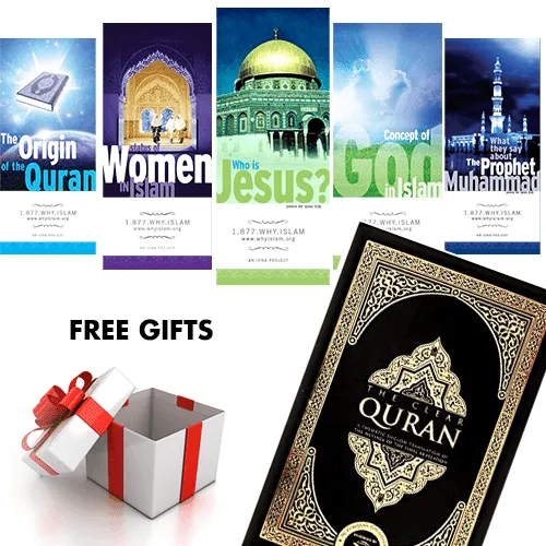 Our package is formed of 6 reading materials. You will receive an English version of the Quran, a 'Who Was Jesus' (peace be upon him) brochure, a 'Origin of the Quran' Brochure, a 'Concept of God in Islam' brochure, a 'Islam Explained' brochure and finally a 'Who is Muhammmad' (peace be upon him) brochure.